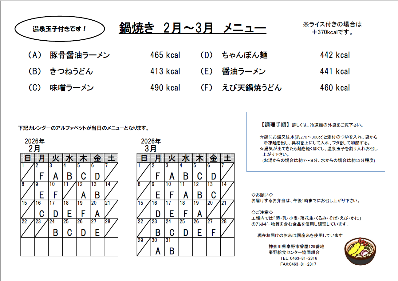 3/2(月)目玉焼き・ハンバーグのデミソースがけえびのフリッター・キャベツ・ビーフンソテー・五目金平・ブロッコリーのごま和えエネルギー 780kcal 蛋白質 25.9g 脂質 25.4g 食塩 4.1g